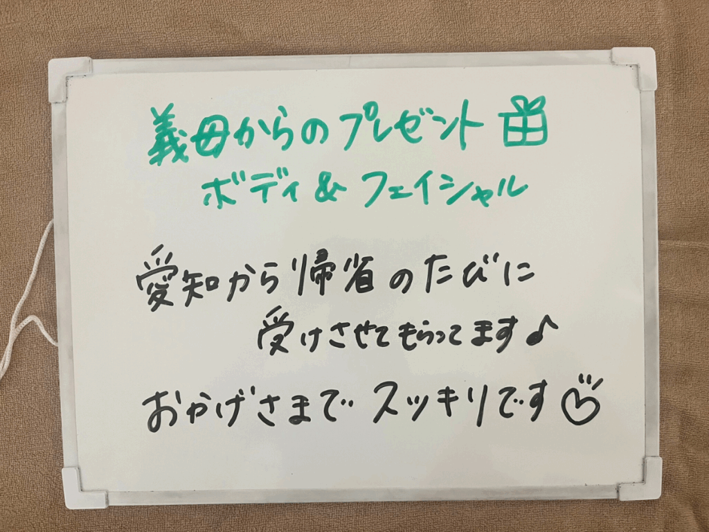 「愛知から帰省のたびに受けさせてもらってます。おかげさまでスッキリです」