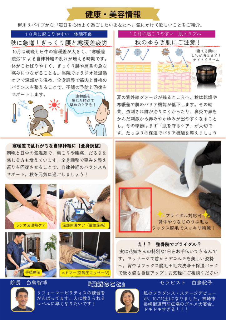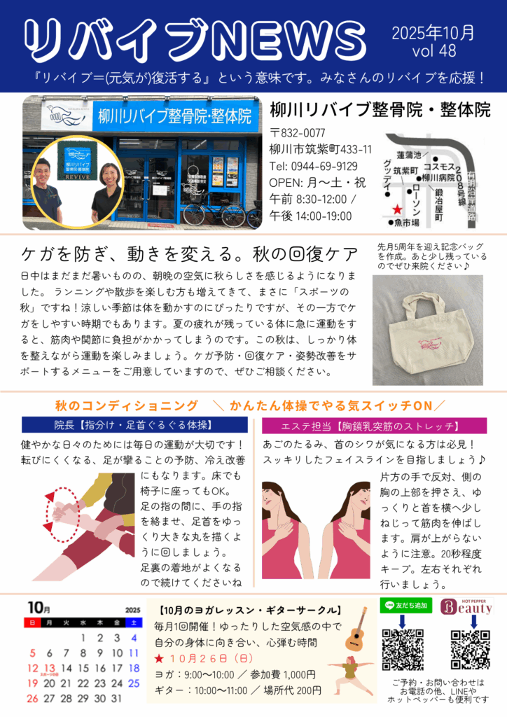 #柳川市 #整骨院 #柳川エステ #ニュースレター #10月