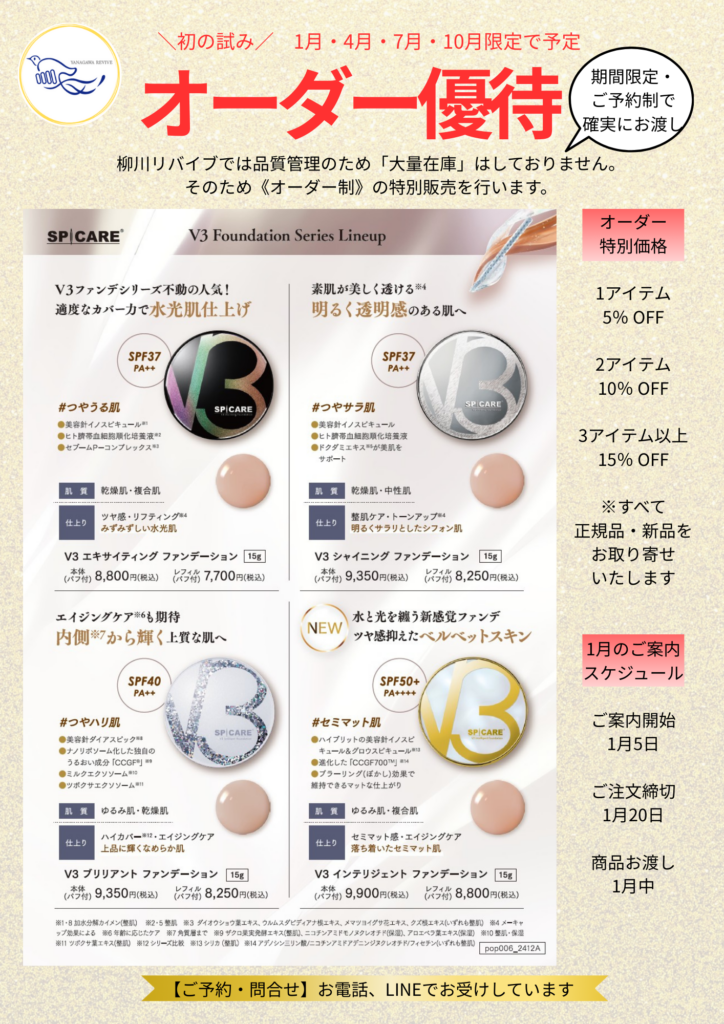 【初の試み】V3ファンデーション オーダー優待のご案内|年4回・期間限定で確実にお渡し