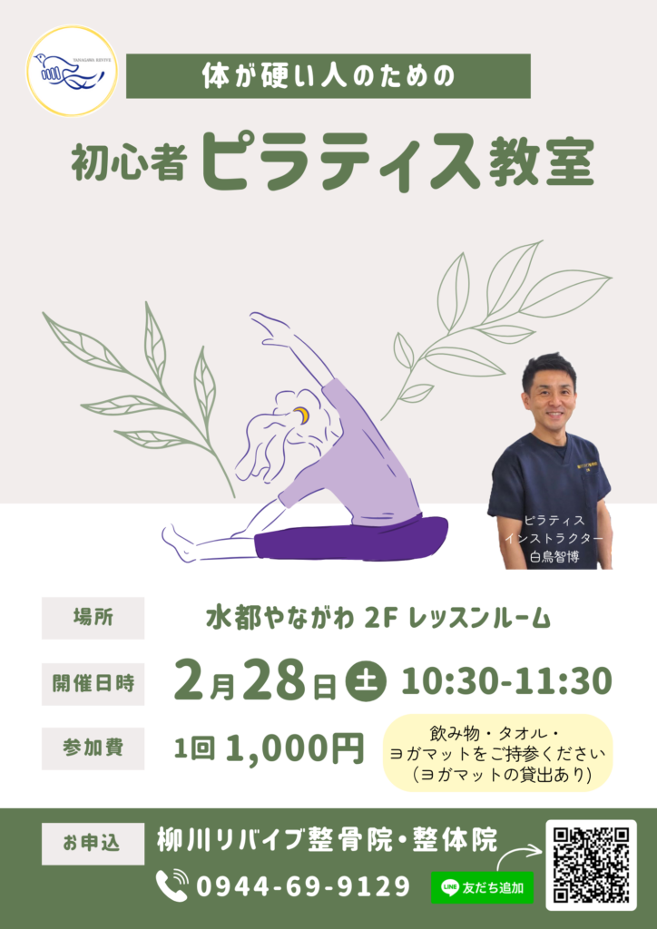 2月28日(土)に初の「体がかたい人のためのピラティス教室」を開催します。