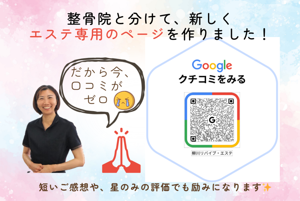 今日は、皆様にひとつ、新しいご報告があります。 この度、エステのメニューや魅力をより詳しく、そして分かりやすくお届けするために、Googleマップにて「柳川リバイブ・エステ」専用のページを新設いたしました!